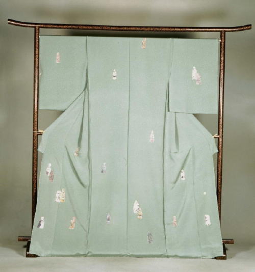 ●・【更に値下げしました!】正絹 広衿 菊や梅、扇面文の訪問着着物、少々難【仕立て上がりリサイクル着物】《送料無料!》.. 素材 正絹 緑がかった青灰色の地に、1cmくらいの葉っぱが細い線で連なっています。1cmくらいのお花も所々に配されています。菊や・・・もっと見る ------ |